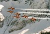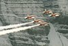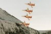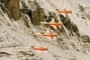 SEHR WICHTIGER HINWEIS: Die Schießübung der Schweizer Luftwaffe kann man nicht mit anderen Airshows vergleichen. Es ist ein absolut einzigartiges Erlebnis, die Jets knapp an den Bergen entlangdonnern zu sehen, während sie auf Ziele schießen, die höchstens 250 Meter entfernt sind. Um in dieses Genuß zu kommen muß man jedoch einen hohen Preis zahlen: Man muß früh morgens aufstehen und einen ca. 2-stündigen Aufstieg durch Schnee, Matsch und Geröll auf sich nehmen, um zum über 2000 Meter hoch gelegenen Schießplatz zu gelangen. Wenn man diesen Aufstieg wagen will benötigt man auf alle Fälle gute Wanderschuhe und man sollte entsprechend fit und geübt im Bergwandern sein. Anderenfalls ist das ein gefährliches Unterfangen! Außerdem sollte man sich im klaren sein, daß es keine Garantie für die Durchführung der Veranstaltung gibt. Es ist sehr wahrscheinlich, daß man die ganzen Strapazen auf sich nimmt, nur um den ganzen Tag bei eisiger Kälte im Nebel zu stehen. Also überlegen Sie sich gut, was sie tun! |