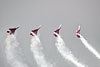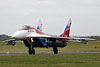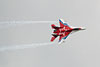 Mikojan MiG-29M OVT (Kombination von 4 Bildern, die die verschiedenen Stufen des Flugmanövers mit hohem Anstellwinkel zeigen)
