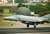 Eine 'Schwarznase' beim Start. Die schwarze Nase zeigt, daß diese F-4F noch das alte Radar-System hat.