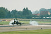 Die 'Schwarznase' bei der Landung. Man erkennt gut den verwirbelnden Rauch der Reifen.