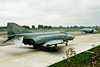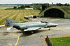 Eine F-4F Phantom auf dem Weg zu ihrer Parkposition vor einem Shelter.
